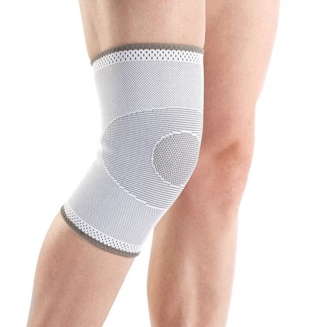 Elastinis kelio įtvaras pagamintas iš vientiso ortopedinio kompresinio audinio, kuris anatomiškai priglunda prie sąnario ir užtikrina tikslų bei kryptingą suspaudimą. Audinys yra pralaidus orui, padeda pašalinti perteklinę šilumą ir drėgmę, taip mažinant bakterijų kaupimosi riziką ir diskomfortą dėvint ilgą laiką.