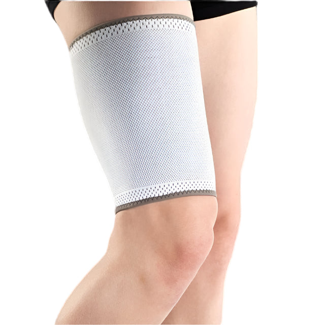 Elastinis šlaunies įtvaras pagamintas iš vientiso ortopedinio kompresinio audinio, kuris kvėpuoja, greitai išgarina drėgmės perteklių ir palaiko optimalią temperatūrą. Anatominė forma taikliai apgaubia šlaunį, užtikrina kryptingą suspaudimą ir stabilizuoja raumenis be judesių apribojimo. Lengvas, plonas dizainas patogiai telpa po sportine ar kasdiene apranga.