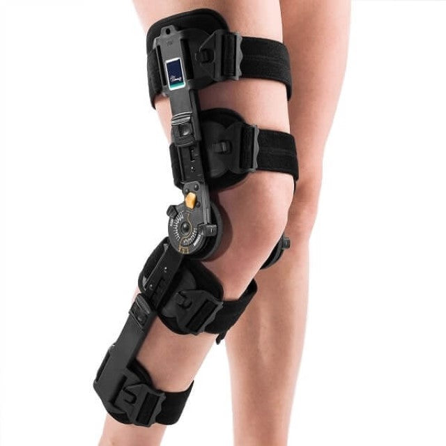 Imobilizuojantis kelio įtvaras pagamintas iš trijų sluoksnių lengvo putų audinio: išorėje sustiprintas patvaria medžiaga, viduje padengtas švelniu frotiniu pluoštu, todėl nejautrina odos ir praleidžia orą. Dvi aliuminės šoninės juostos patikimai riboja kelio judesius visomis kryptimis, o daugiataškė Velcro juostų sistema leidžia greitai užsidėti įtvarą ir tolygiai reguliuoti suspaudimą aplink visą koją.
