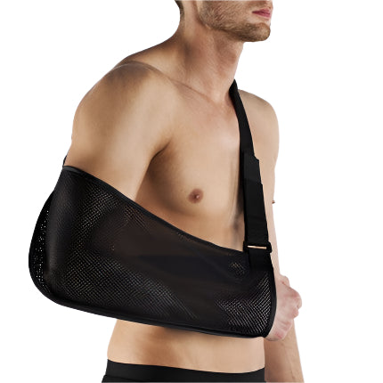 Rankos laikiklis pagamintas iš lengvos, orui pralaidžios medžiagos, todėl ranka išlieka sausa ir nevargsta net ilgiau nešiojant. Reguliuojama Velcro peties juosta leidžia greitai pritaikyti ilgį, o minkšta pagalvėlė apsaugo kaklą nuo dirginimo ir per didelio spaudimo. Dailus dizainas ir plonas profilis nekrenta į akis po drabužiais, tad įtvarą patogu dėvėti tiek namuose, tiek darbe ar kelionėje.
