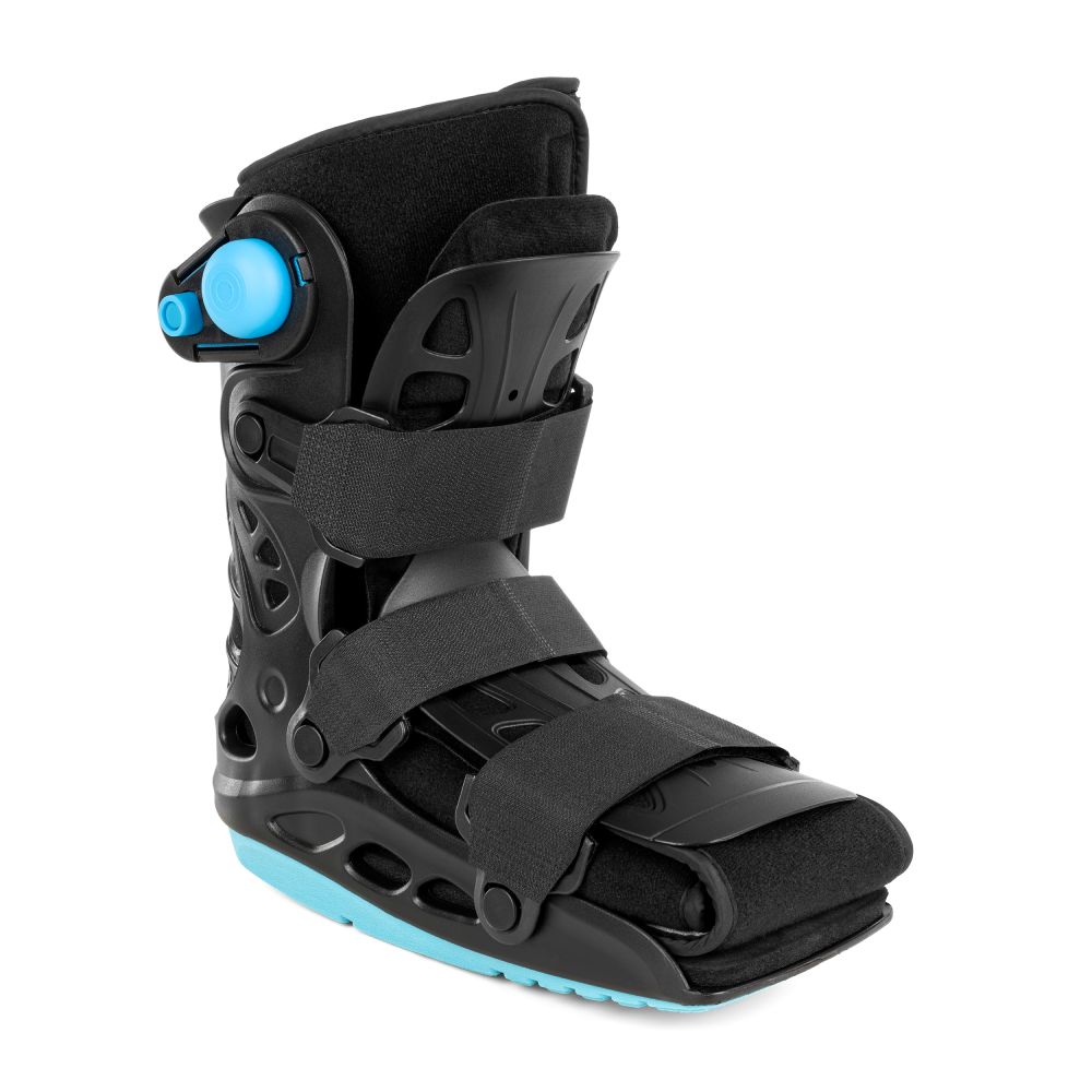 Kulkšnies–pėdos įtvaras su pneumatiniu stabilizatoriumi yra lengvas, bato formos įtvaras, pagamintas iš tvirto polipropileno korpuso ir kvėpuojančių vidaus sluoksnių. Du oro pagalvėlių kanalai leidžia sparčiai reguliuoti suspaudimo lygį ir prisitaikyti prie sparčiai kintančio tinimo. Penkios Velcro juostos tolygiai apspaudžia pėdą, kulkšnį ir blauzdą, o profiliuotas neslystantis padas suteikia stabilų žingsnį reabilitacijos metu.