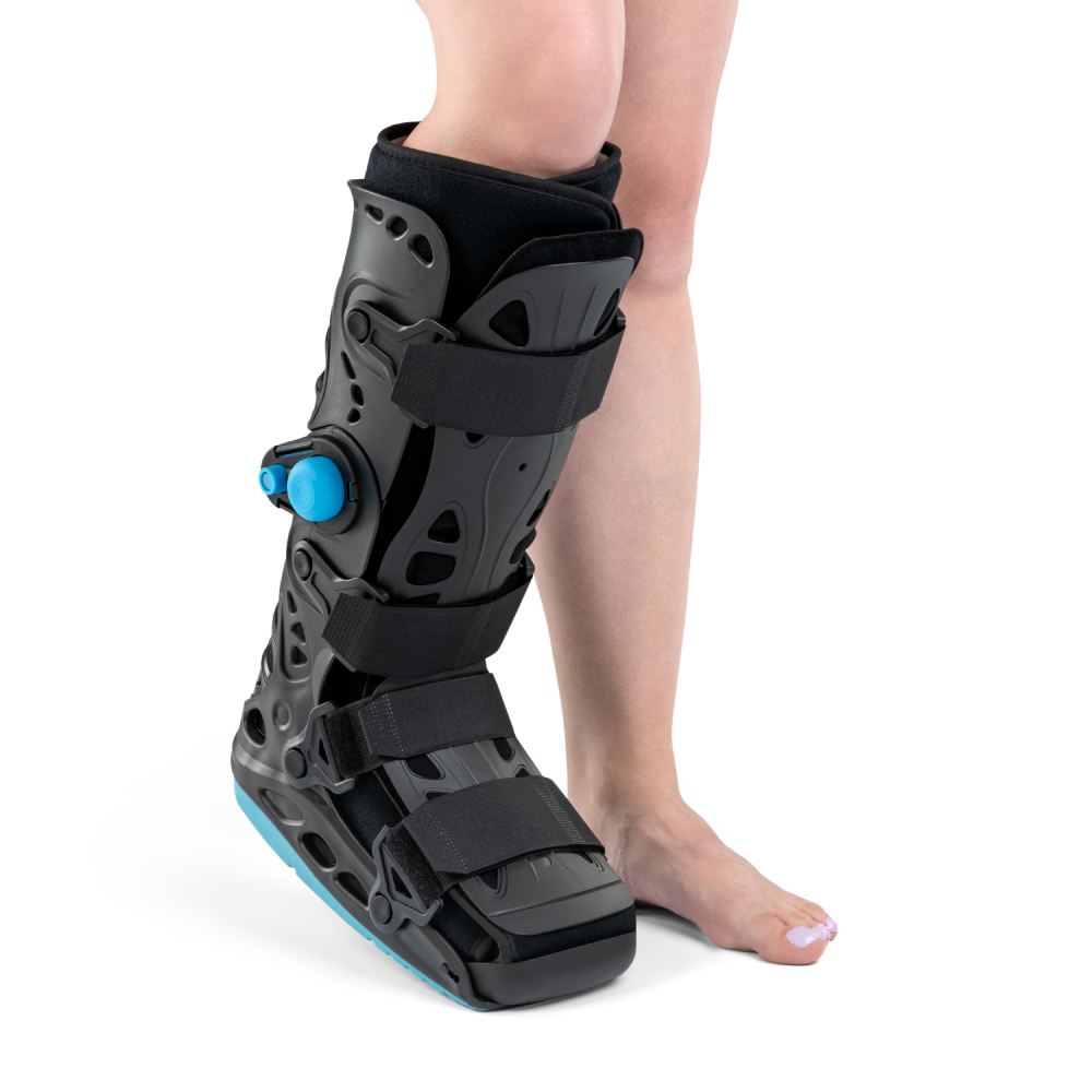 Kulkšnies–pėdos įtvaras su pneumatiniu stabilizatoriumi yra aukšto profilio, bato formos įtvaras, pagamintas iš tvirto polipropileno karkaso ir kvėpuojančių vidaus sluoksnių. Dvi oro pagalvėlės leidžia greitai reguliuoti suspaudimo lygį bei prisitaikyti prie tinimo pokyčių, o penkios Velcro juostos tolygiai apspaudžia pėdą, kulkšnį ir blauzdą. Profiliuotas neslystantis padas užtikrina stabilų žingsnį reabilitacijos metu ir leidžia laisvai judėti kasdienybėje.