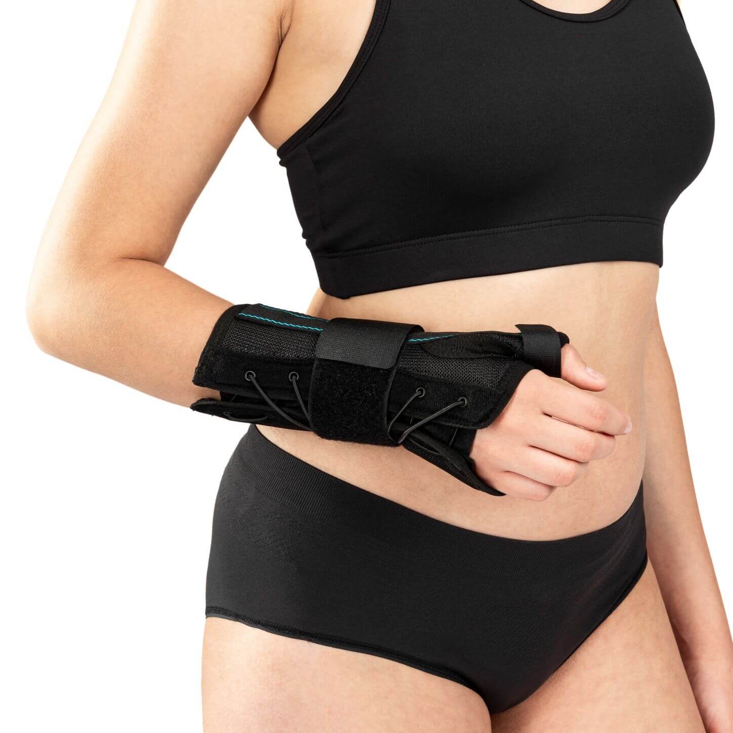 Riešo įtvaras su nykščio laikikliu pagamintas iš orui pralaidaus elastingo audinio. Delno pusėje įlieta aliuminė plokštelė imobilizuoja riešą, o formuotas įtvaras stabilizuoja ir nykštį anatominėje padėtyje. Raištelių sistema padeda lengvai užsidėti įtvarą net esant jautrumui, o plačioji Velcro juosta tolygiai sutraukia audinį, užtikrindama patikimą atramą.